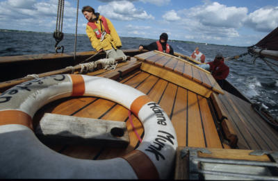 Gut segeln lässt sich HANNE MUNK zu zweit. Piek- und Klaufall können mit etwas Übung alleine bedient werden. Zu dritt